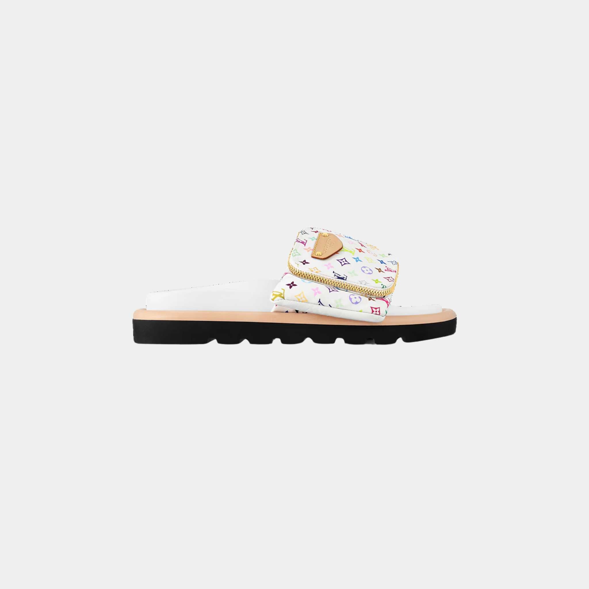 Step into luxury with the Louis Vuitton LV x Takashi Murakami Pool Pillow Flat Comfort Mule, a standout piece from the exclusive Louis Vuitton x Murakami Collection. This highly sought-after mule features vibrant multicolored Monogram motifs inspired by the Japanese artist’s signature aesthetic, making it a bold statement for modern women. Designed for casual comfort, it combines artful design with practicality, perfect for elevating your everyday footwear collection.