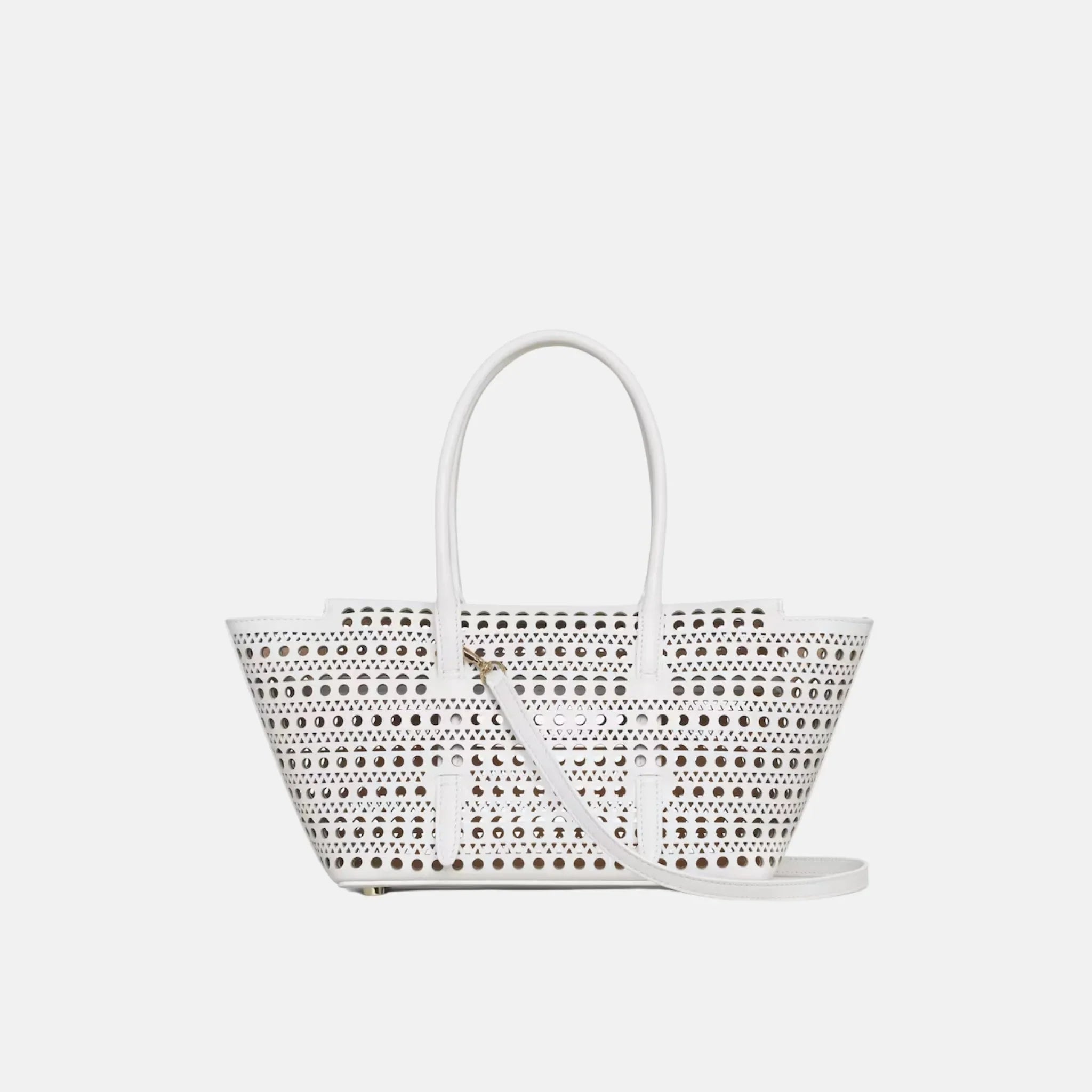 Crafted from premium calfskin leather, the Alaïa Neo Mina 20 Bag offers durability, elegance, and a sleek aesthetic. The exquisite Vienne cut-out motif adds a touch of architectural detailing, inspired by the House’s heritage craftsmanship. Its structured shape maintains a polished look while providing practicality and ease of use. The removable leather strap offers multiple styling options, allowing for effortless transitions from hand carry to cross-body wear.