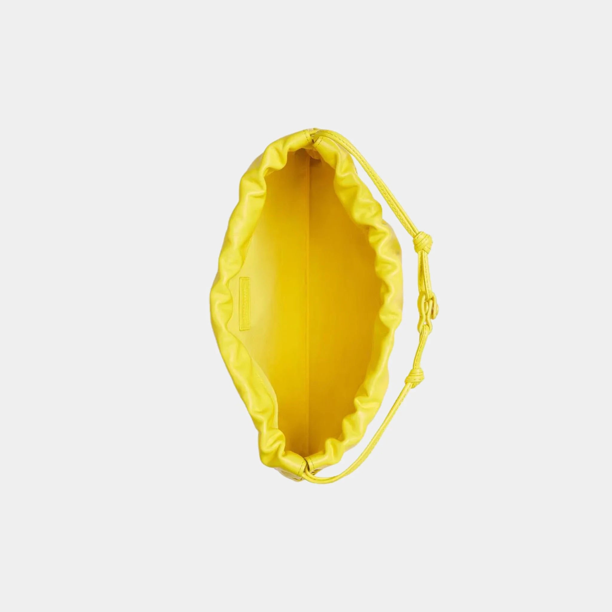 With a single main compartment, this bag is ideal for carrying essentials in a streamlined, effortless manner. The drawstring closure with a leather loop attachment allows for easy shoulder carry, while the nylon lining ensures durability and lightweight practicality. The soft yet structured silhouette makes it perfect for casual elegance or as a stylish companion for travel and daily essentials.