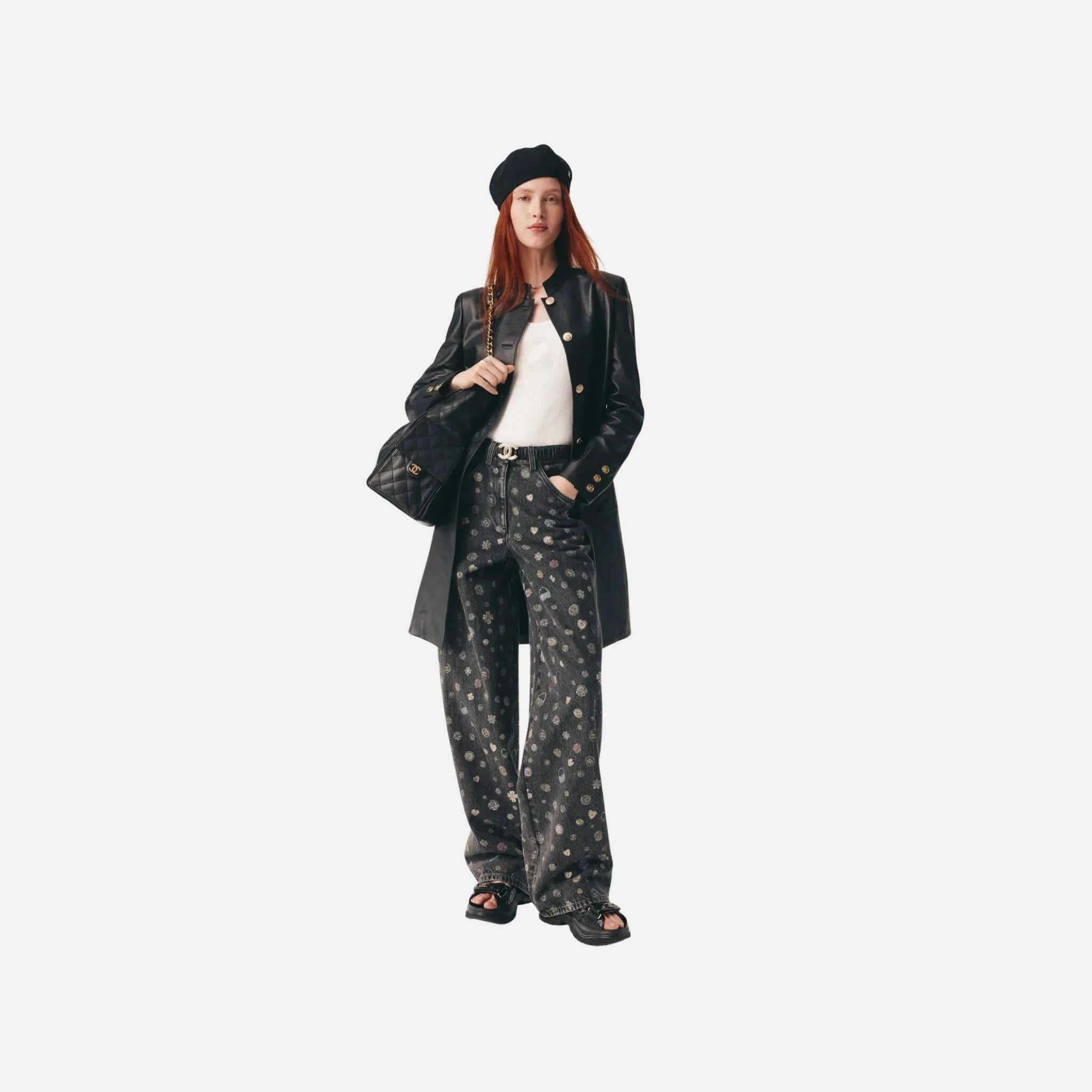 The Chanel Jeans in Laminated Denim bring a daring, contemporary edge to everyday wear. Designed in a dark gray and multicolor palette, these jeans feature a lustrous finish that reflects light and adds depth. With their sleek silhouette and standout fabric, they embody modern Chanel sophistication with a fashion-forward twist.