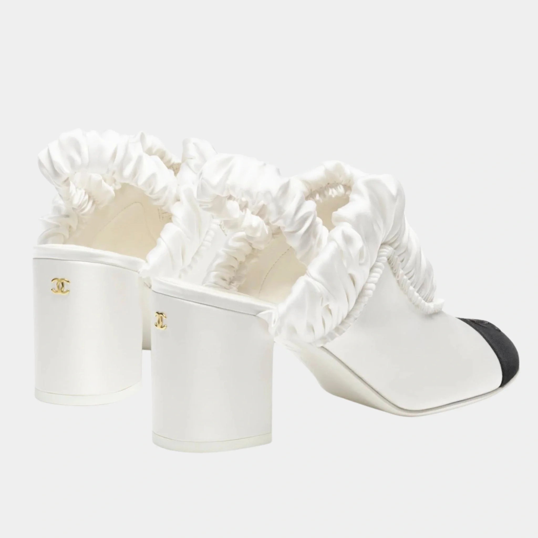The Chanel Slingbacks in Silk Satin & Grosgrain Black are a timeless symbol of Parisian elegance and refinement. Designed with the iconic two-tone style that Chanel is celebrated for, these heels embody understated luxury and versatile sophistication. Crafted from premium silk satin with grosgrain details, they offer a perfect balance of elegance and durability. Whether styled for a formal evening event, a chic office look, or a refined daytime outing, these slingbacks are an essential addition to any luxury footwear collection.