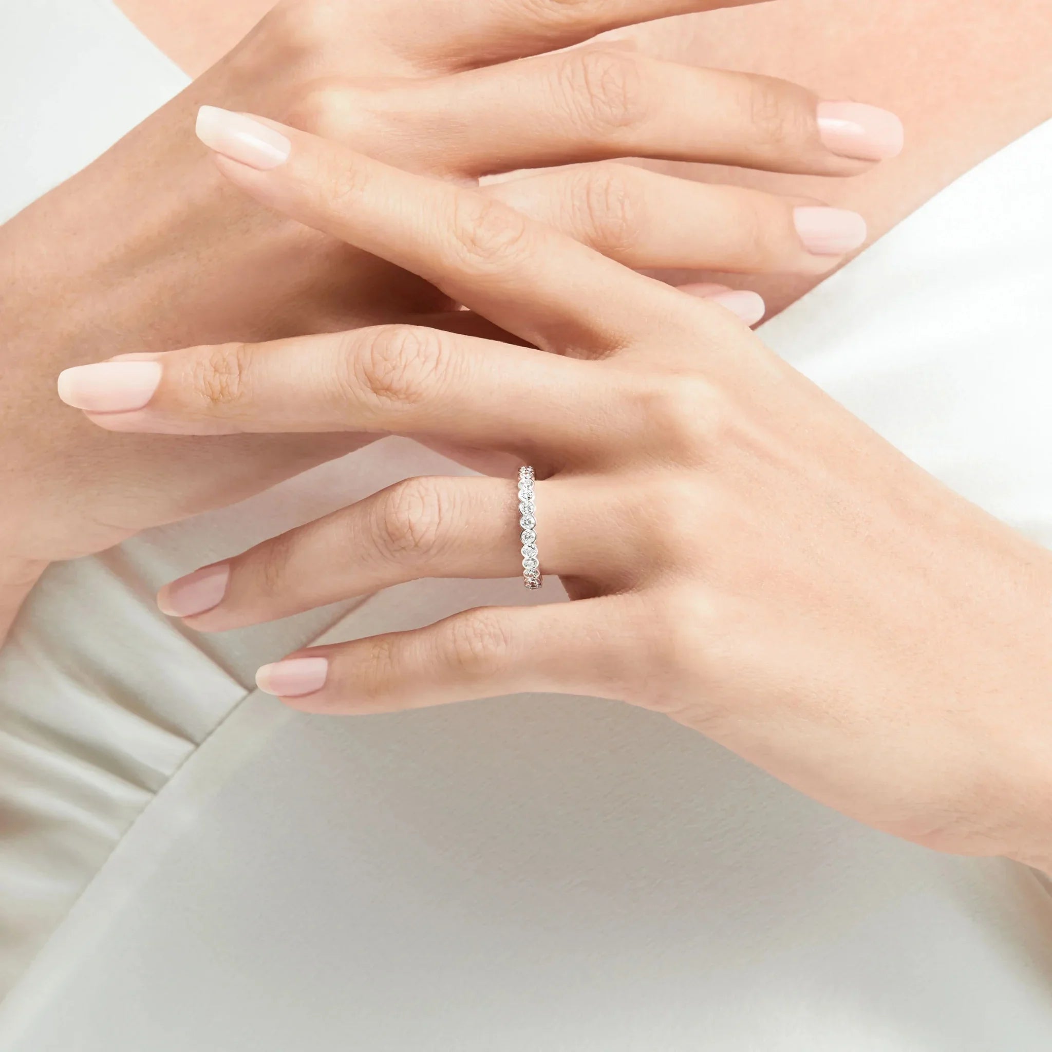 Bezel setting offers a smooth, modern aesthetic with added security