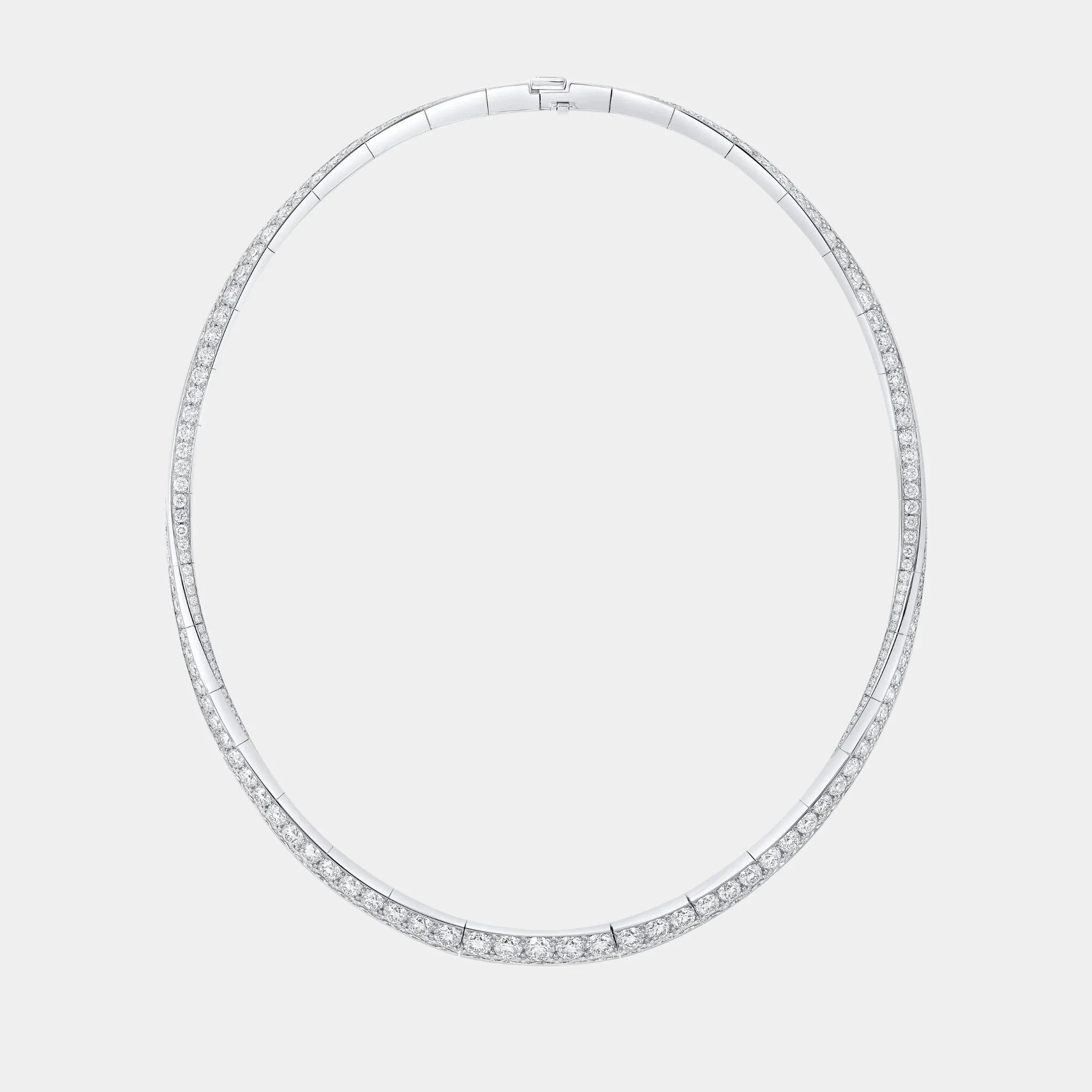 The Graff Spiral Diamond Necklace in white gold embodies a seamless union of light, form, and craftsmanship. This mesmerizing design features a collection of hand-set round brilliant diamonds that gracefully follow the necklace’s fluid, curving framework. Each diamond reflects Graff’s signature precision and artistry, creating an endless swirl of elegance and brilliance that captures the spirit of timeless sophistication.