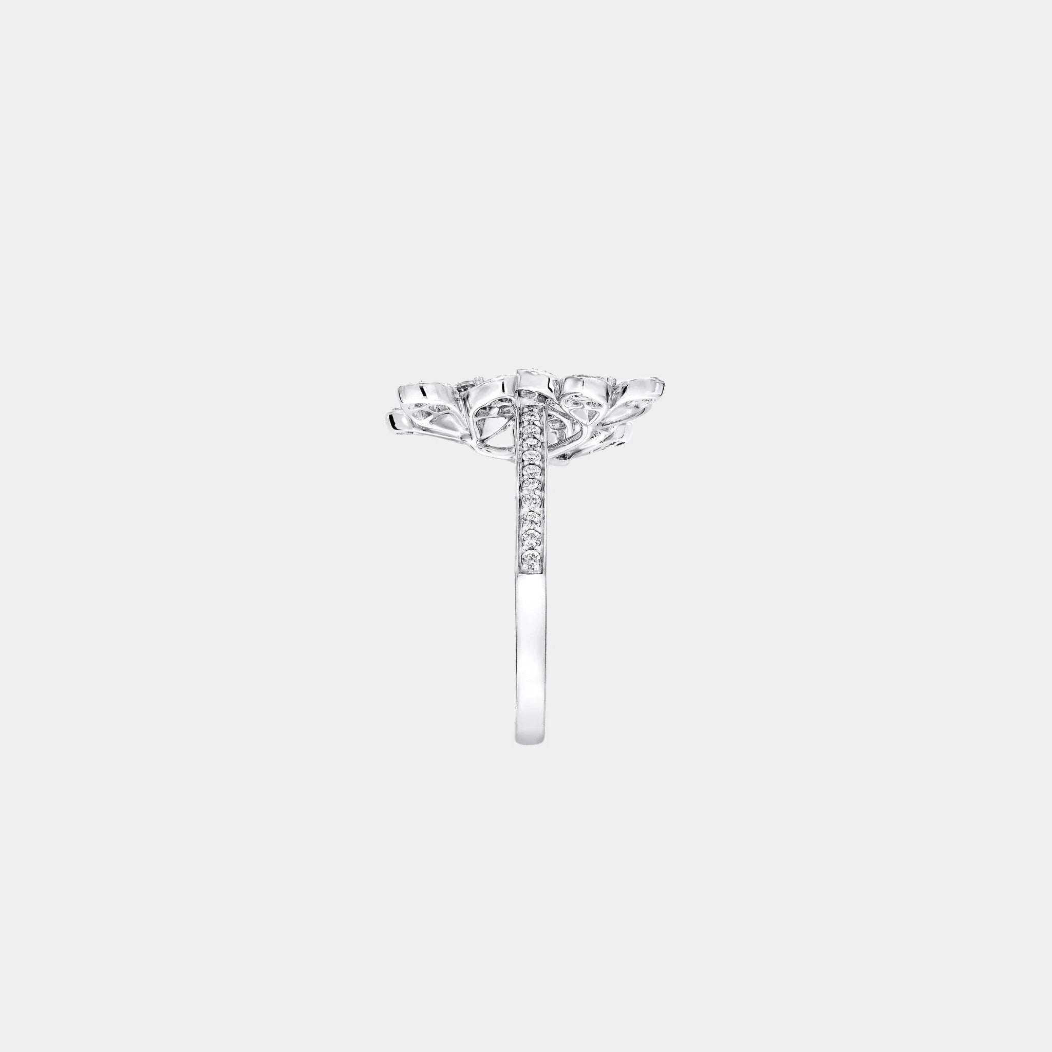 The Graff Wild Flower Diamond Cluster Ring celebrates the beauty of nature in radiant bloom. Handcrafted in 18k white gold, this luxury diamond ring showcases approximately 0.69 carats of brilliant white diamonds, arranged into a trio of lifelike blossoms. Each petal is delicately shaped to rise toward the wearer, creating a natural sense of movement and light that feels joyful and refined.