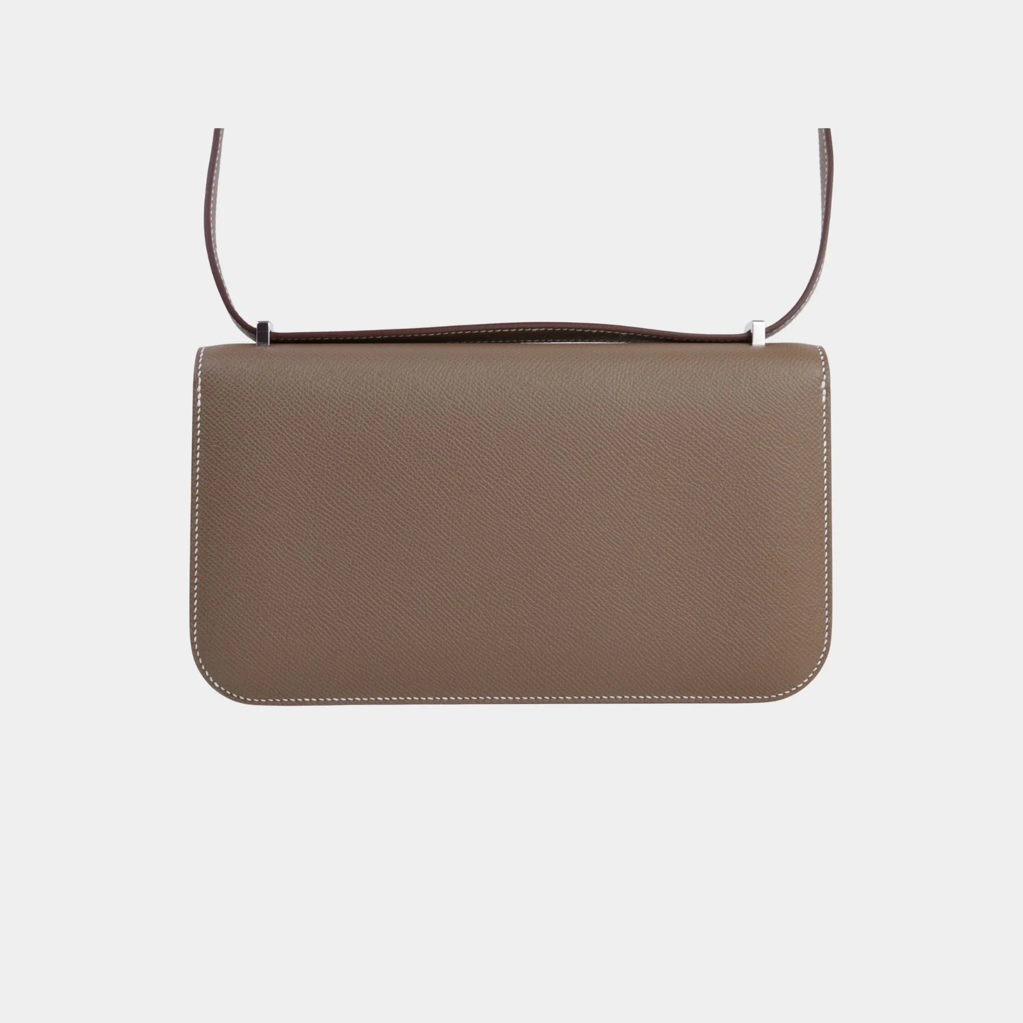 The Hermes Constance Elan 2024 Epsom Etoupe with Palladium Hardware is an exquisite representation of the maison’s craftsmanship and timeless design. Renowned for its sleek silhouette and iconic “H” clasp, the Constance Elan has long been a favorite among luxury handbag collectors. The Etoupe shade in fine-grained Epsom leather paired with refined palladium hardware creates a versatile, sophisticated piece perfect for any wardrobe. With its elegant proportions and modern practicality, this bag embodies understated luxury at its finest.