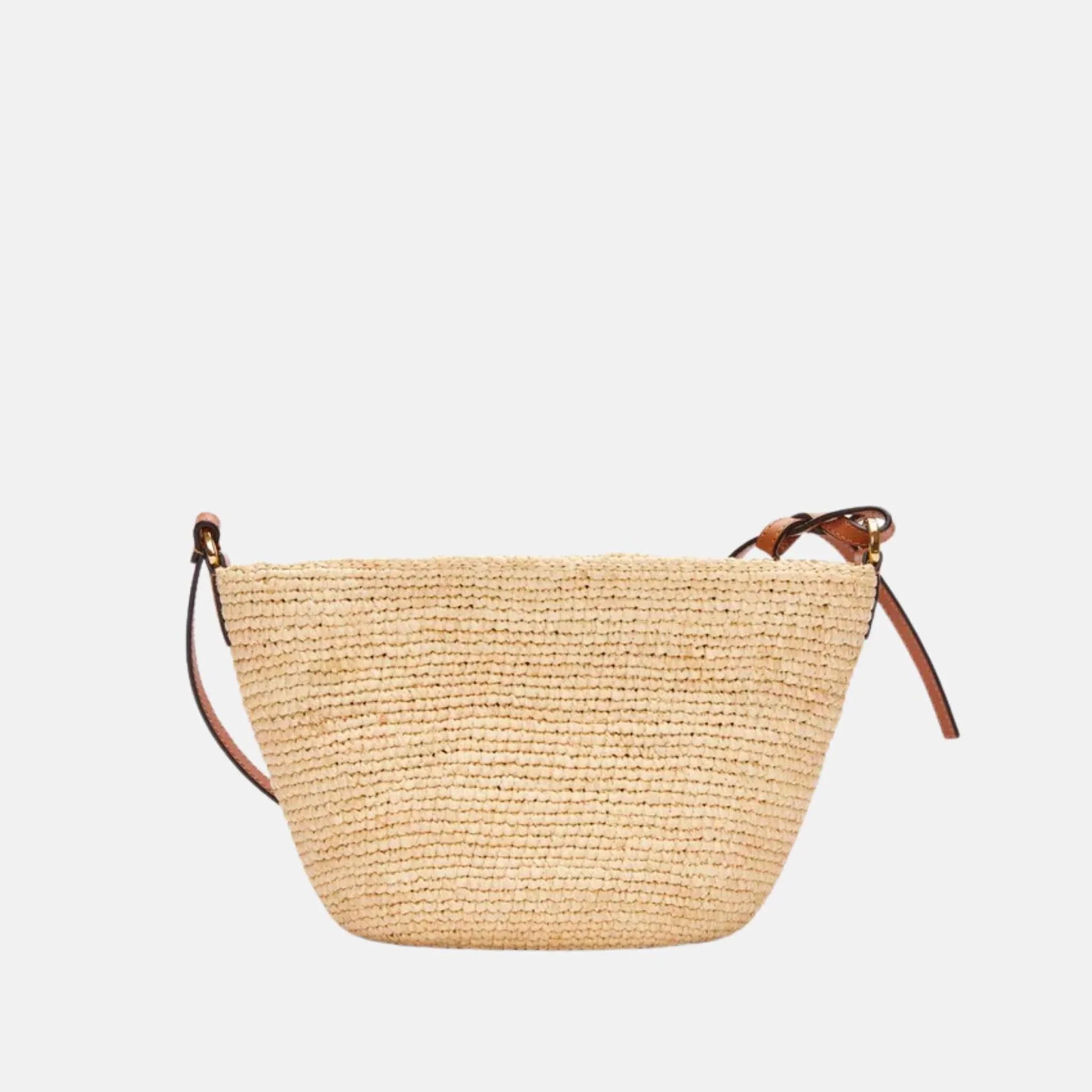 Slit Pochette Bag in Raffia and Calfskin