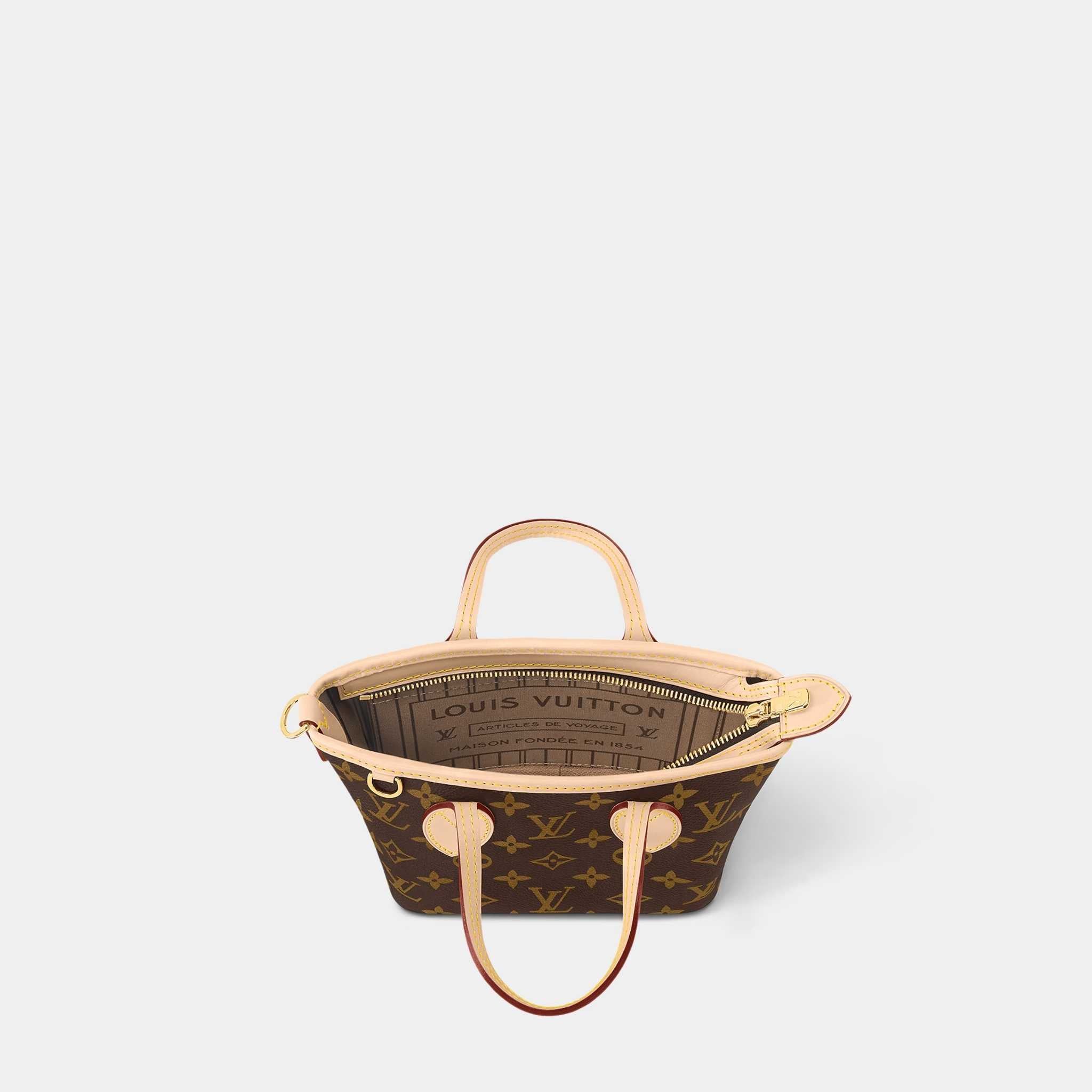 Crafted from iconic Monogram coated canvas, the Neverfull BB is a symbol of timeless elegance and effortless practicality. Complemented by natural cowhide leather trimmings, gold-tone hardware, and a secure zip closure, this mini-tote blends luxury with everyday convenience.