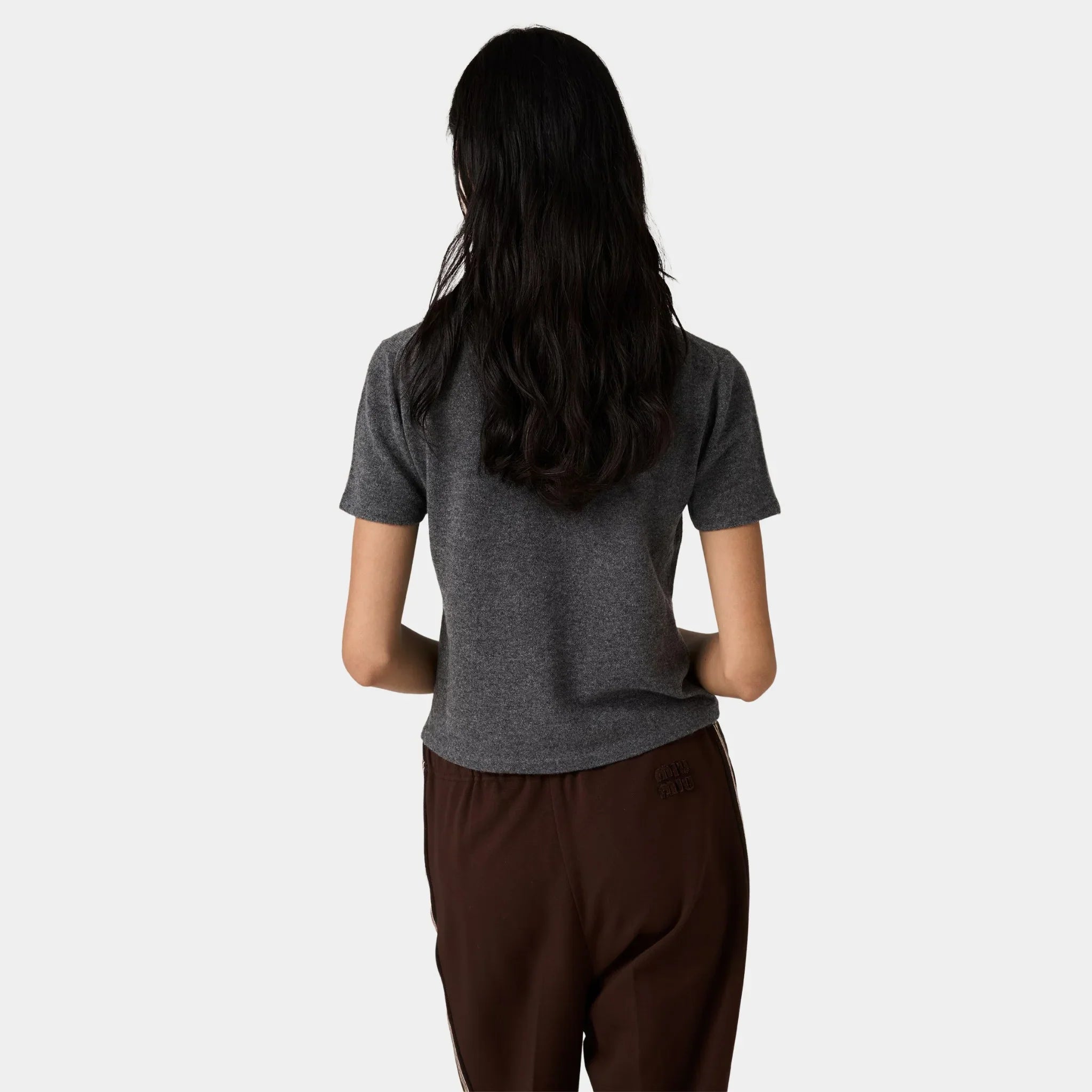 Embrace sophisticated femininity with this exquisite Miu Miu cashmere sweater that redefines contemporary luxury knitwear. Crafted from the finest 100% cashmere, this designer luxury sweater combines sleek lines with versatile volumes perfect for bold layering. The straight fit silhouette with semi-raglan shoulders creates a modern, effortless elegance that embodies Miu Miu's distinctive approach to refined casual wear.