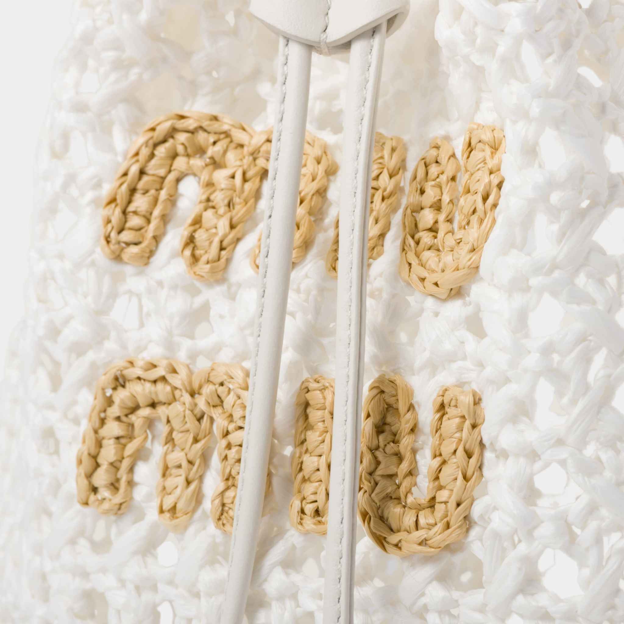 Crafted with a raffia-effect woven fabric, the Miu Miu Woven Fabric Mini-Bag showcases a perfect balance between natural aesthetics and luxury. The drawstring closure adds functionality, while the leather handle provides a refined contrast to the textured fabric. This mini-bag is unlined, highlighting its lightweight and minimalistic design.