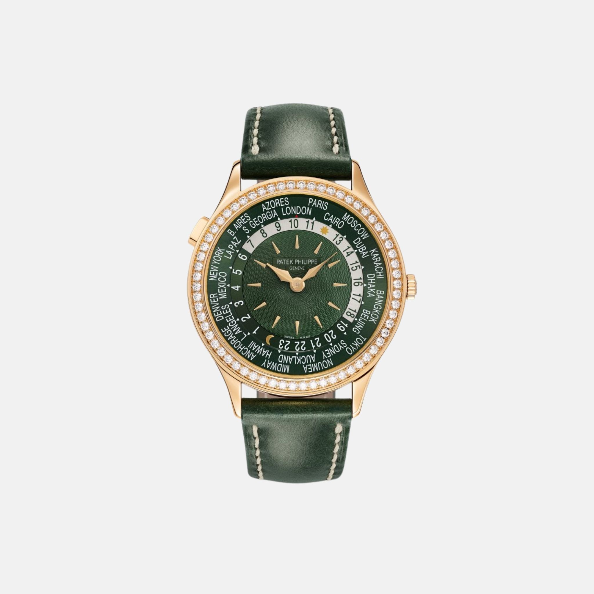 Introduced in 2011, the Reference 7130 marked Patek Philippe's commitment to crafting world time watches tailored for women. In 2022, the Manufacture reimagined this classic by introducing an original and elegant olive green color scheme. This reinterpretation enhances the watch's contemporary appeal while maintaining its timeless charm.