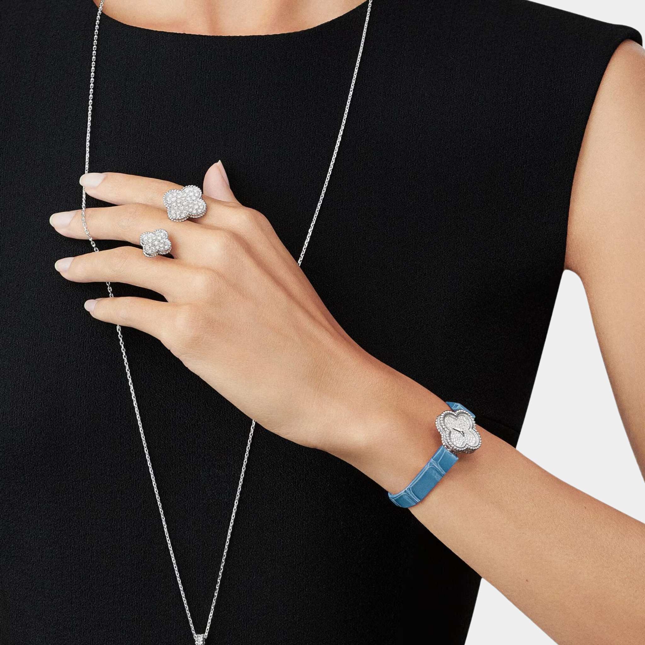 • Design: Innovative between-the-finger design showcasing the iconic Alhambra motif