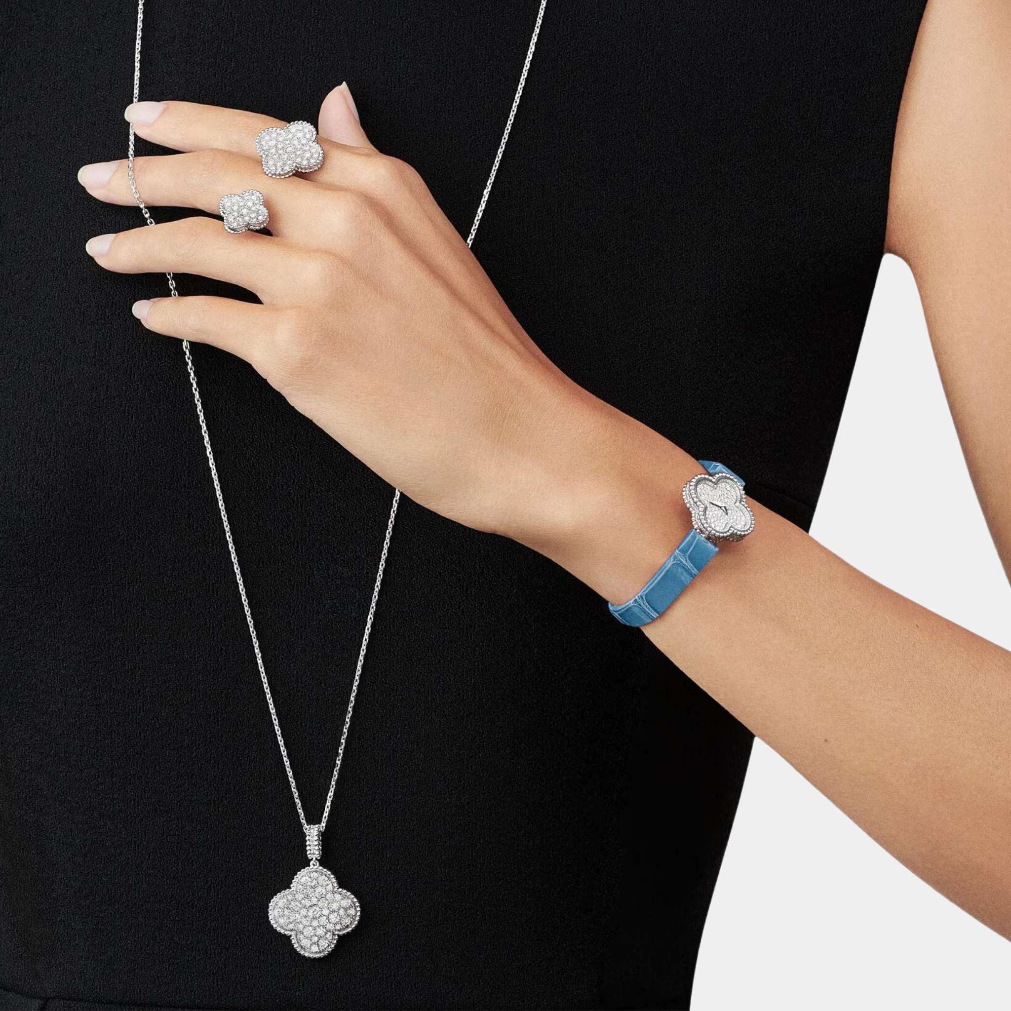 Pair it with matching Alhambra earrings or bracelets to complete your ensemble with effortless luxury.