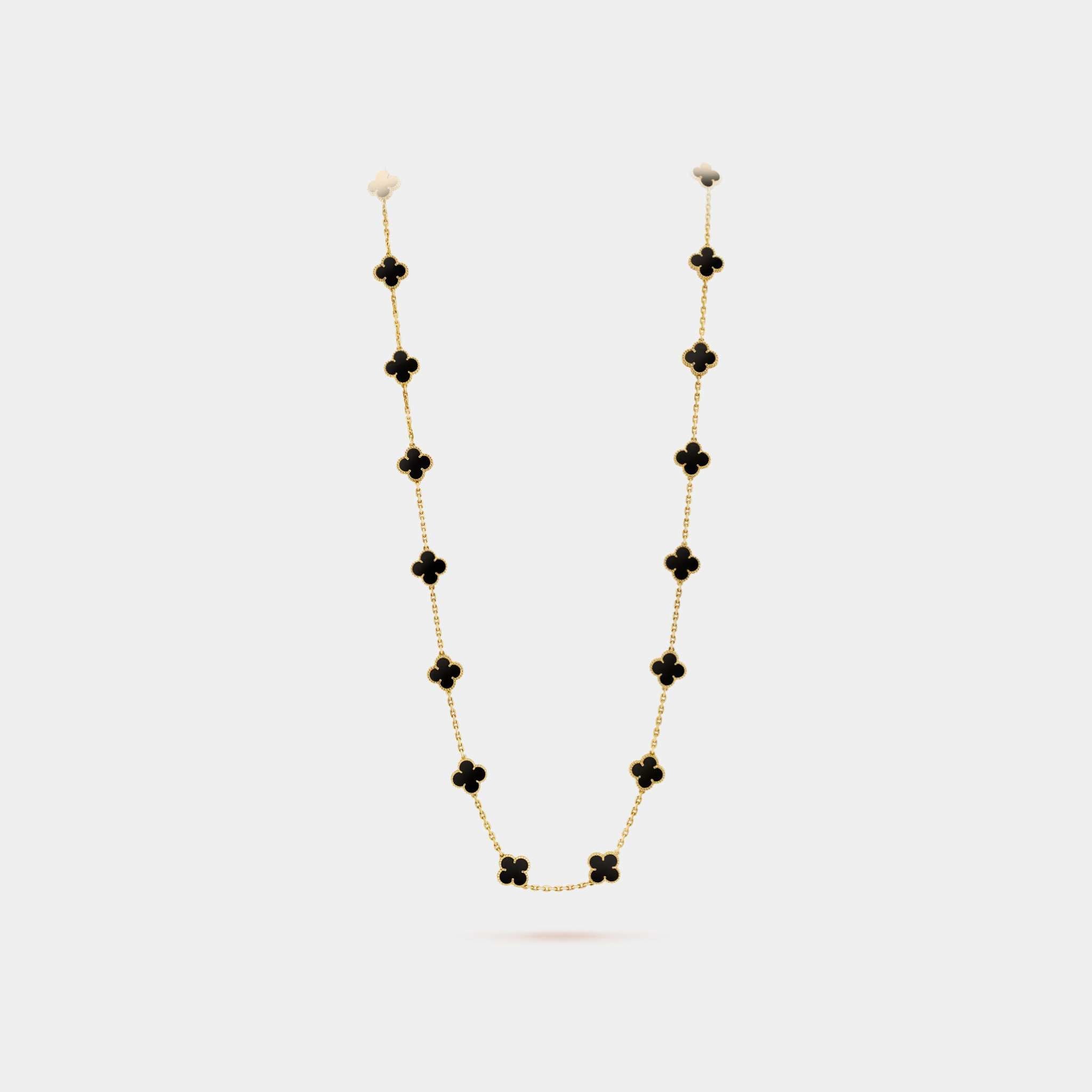 • Vintage Alhambra Long Necklace 20 Motifs Yellow Gold Onyx